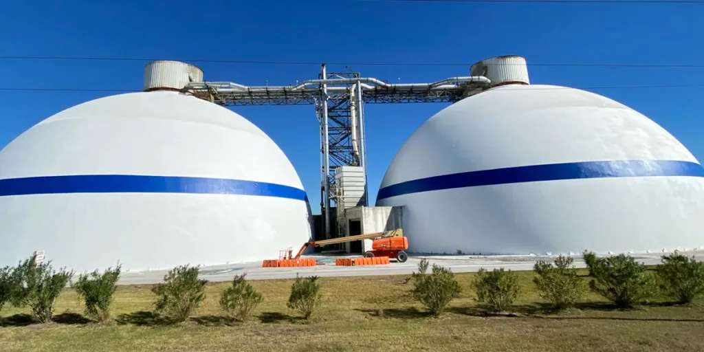 Customized Solutions for Specific Applications: Whether your dome is used for bulk storage (e.g., fertilizers, grains, cement), manufacturing, or as an institutional facility, we understand that “one-size-fits-all” doesn’t apply. We assess the specific use case, environmental exposures, and material handling requirements to recommend and implement the most appropriate MRO strategies and materials. This includes selecting the right interior linings for chemical and abrasion resistance or coatings that can withstand specific industrial exposures.