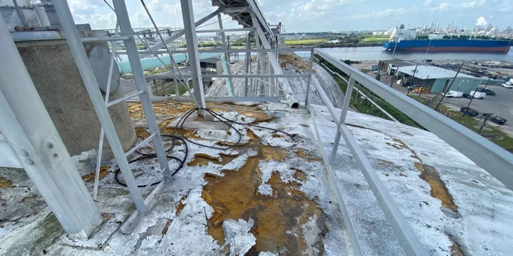 • What to look for: Flaking material from the lining, exposed foam or concrete beneath the lining, visible wear patterns from material handling.
